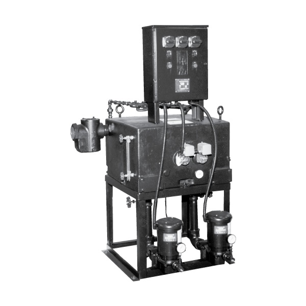 An electrical solenoid make-up water valve with float switch control is standard. Units built in either simplex or duplex configurations with single-phase or three-phase motors; motors available at 3500 RPM for low inertia, intermittent operation. Unit equipped with Model P pumps that have low NPSH requirements. Pumps are bronze-fitted to resist corrosion and prevent seizing; pumps also furnished with mechanical seals rated for temperatures up to 250°F. Higher temperature seals and special faces available upon request.